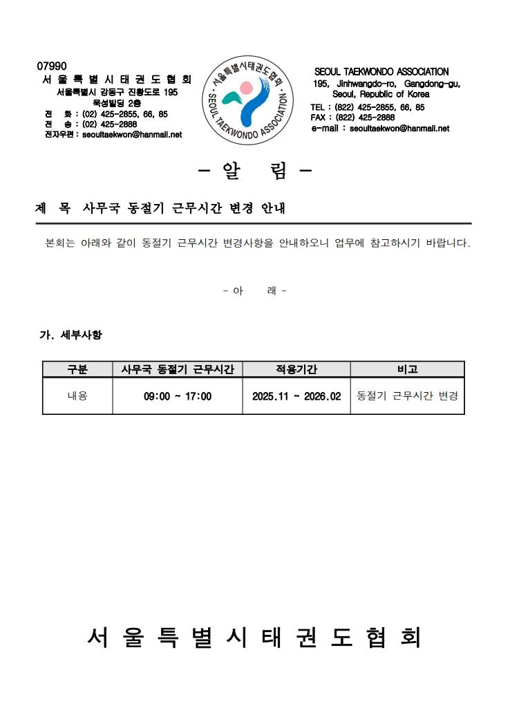 서울특별시 강동구 진황도로 195 욱성빌딩 2층 | EMAIL : seoultaekwon@hanmail.net