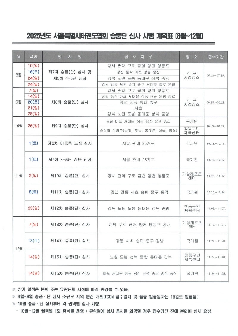 2025년도 승품단 심사 시행 계획표(8월~12월)