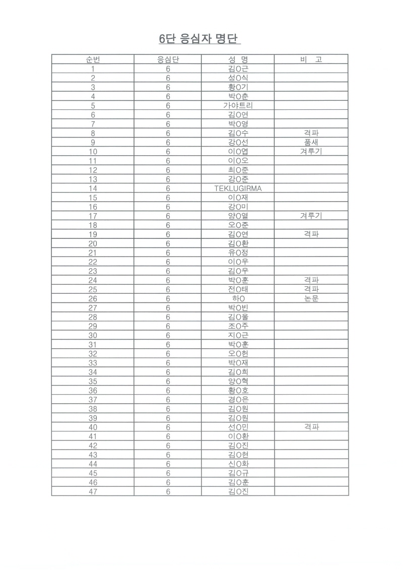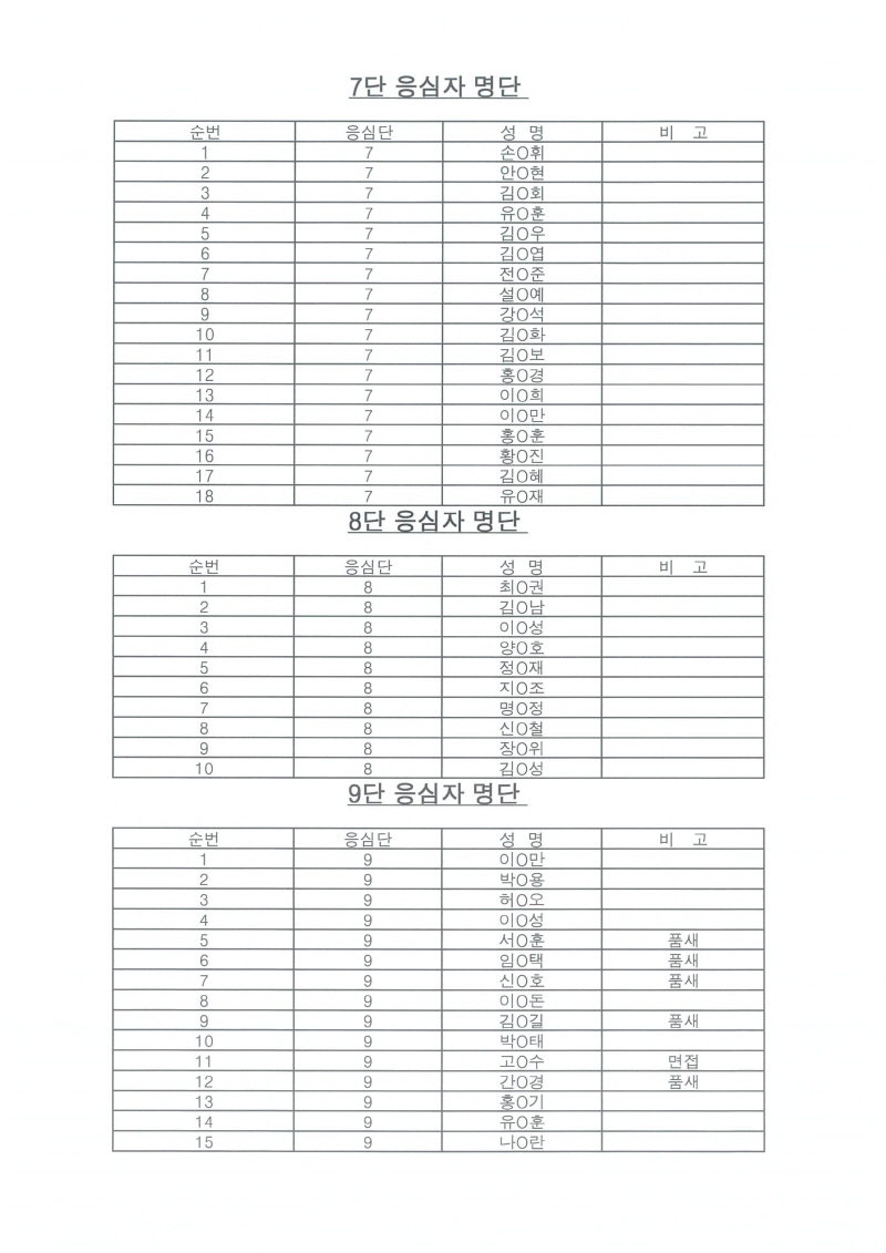 2025년 제4차 고단자(6-9단) 승단 심사 접수자 안내