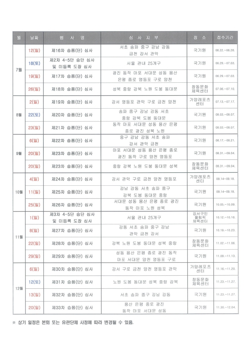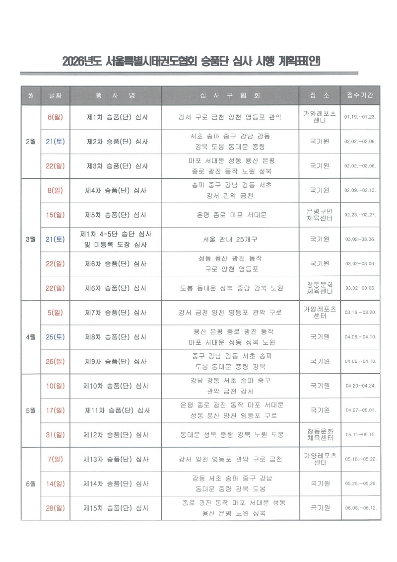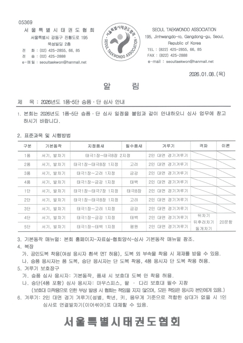 2026년도 1품~5단 승품.단 심사 안내