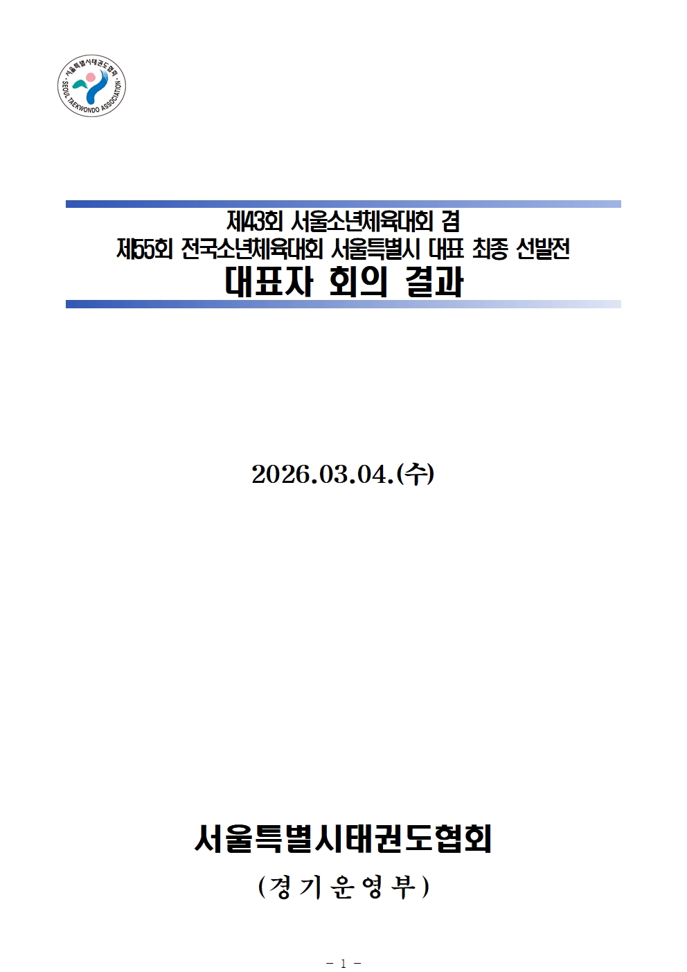 소년체육대회 대표자회의 결과 안내
