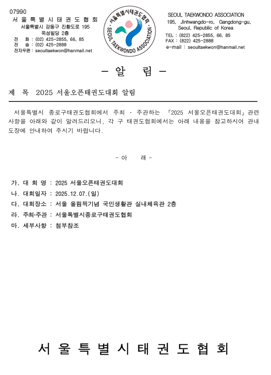 서울특별시 강동구 진황도로 195 욱성빌딩 2층 | EMAIL : seoultaekwon@hanmail.net