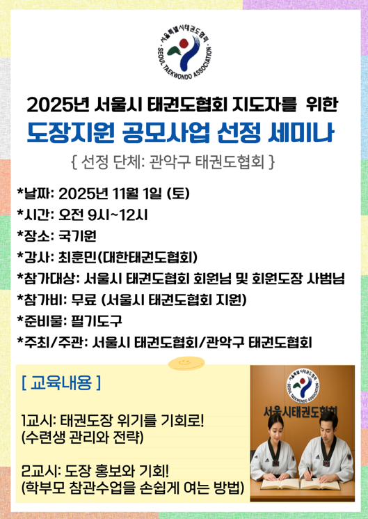 2025년 서울시 도장지원 교육 공모사업 결과 발표
