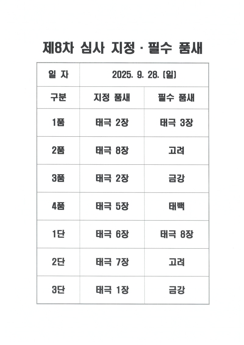 제8차 승품단 심사(09.28) 지정 품새 알림