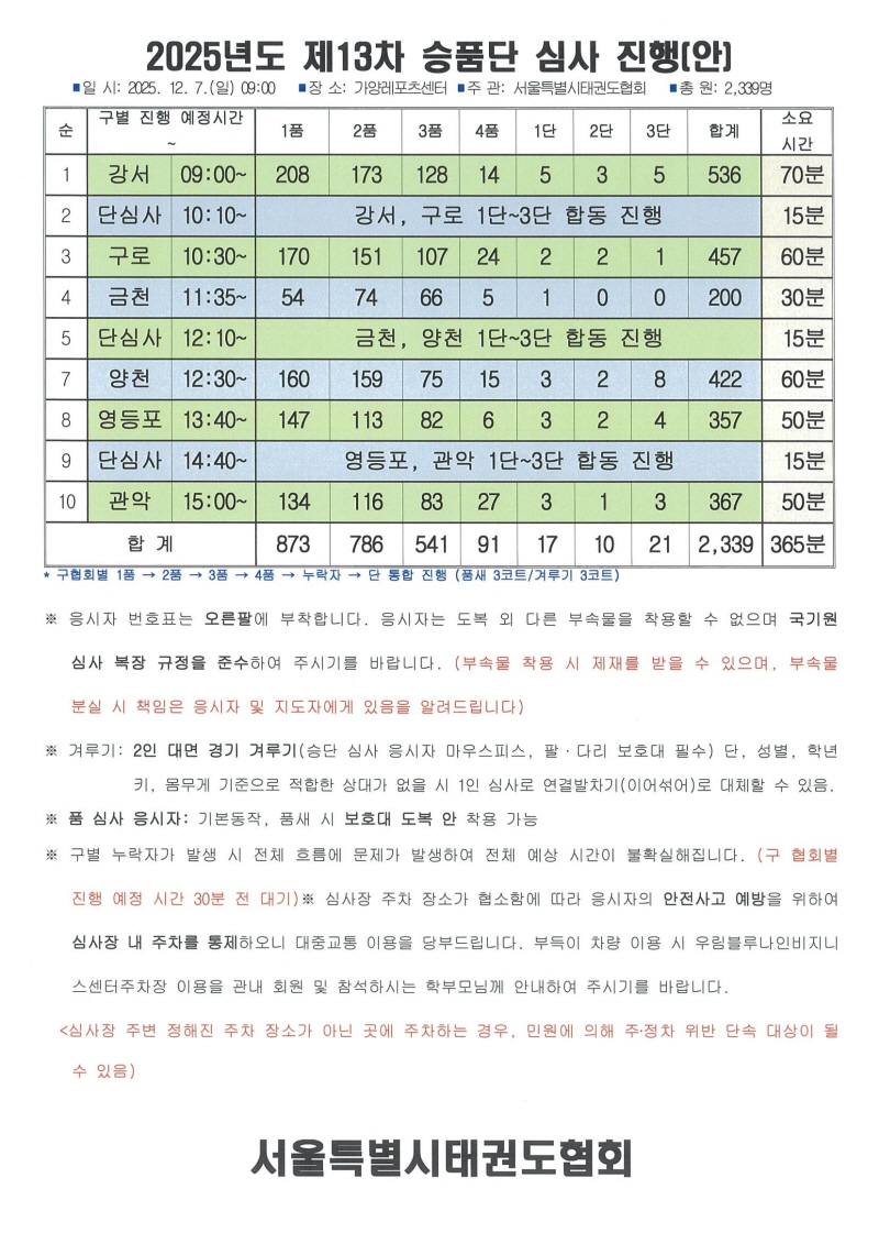 12월 7일 제13차 승품단 심사 진행(안)가양레포츠센터