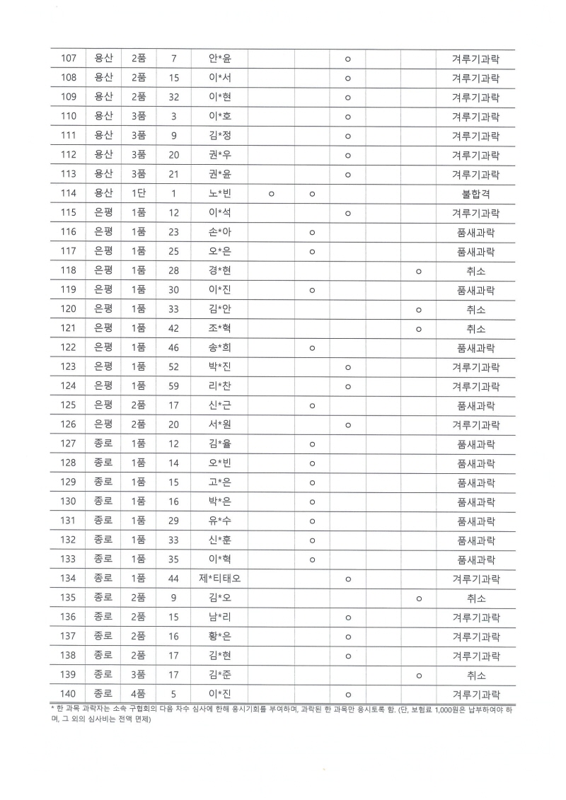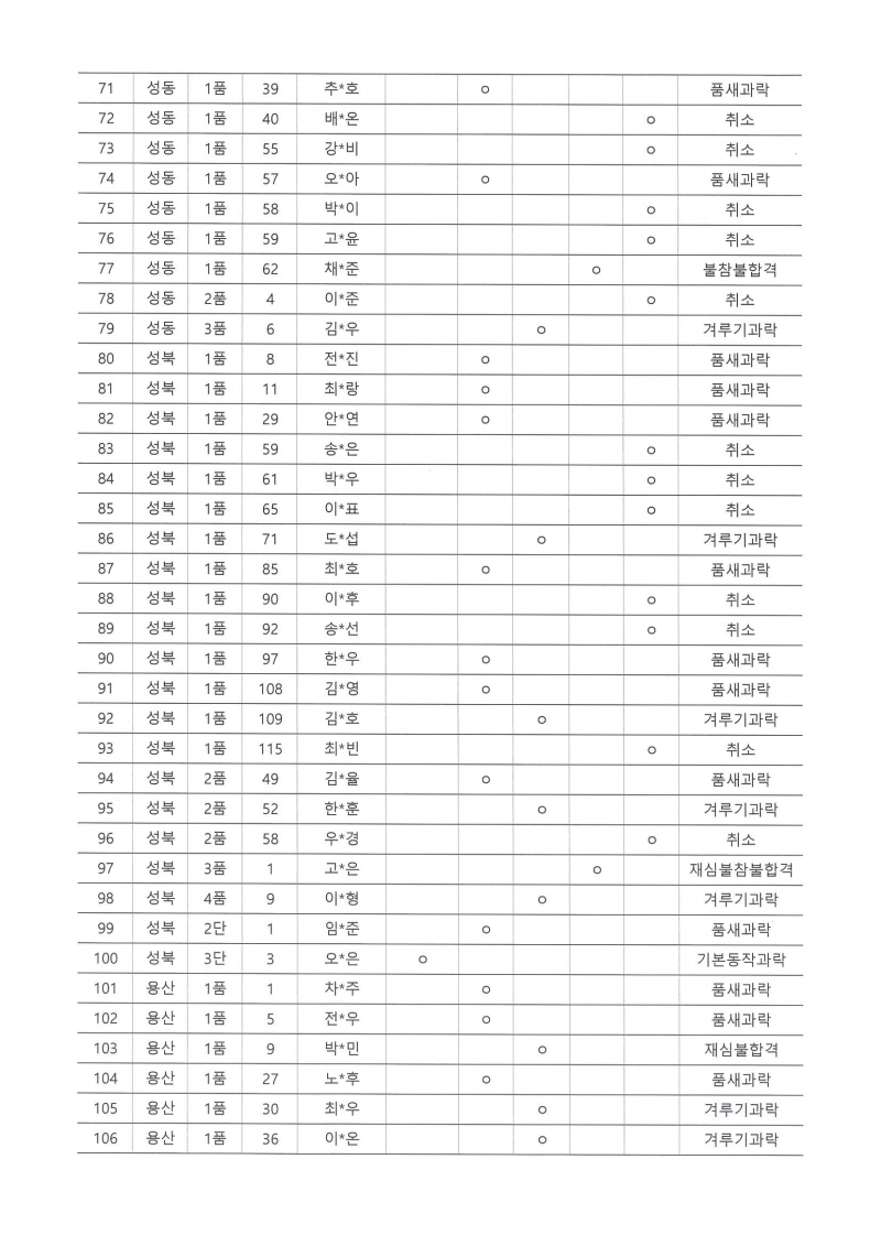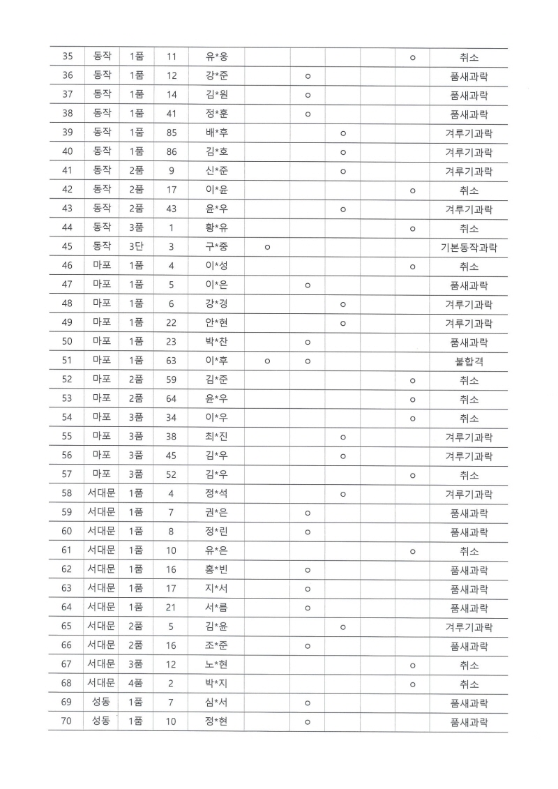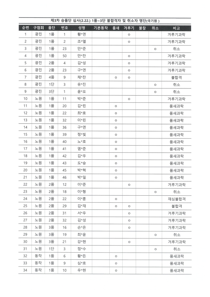제3차 승품단 심사(2.22) 불합격자 및 취소자 명단(국기원)