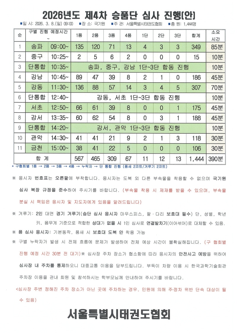 3월8일 제4차 승품단 심사 진행(안) 국기원