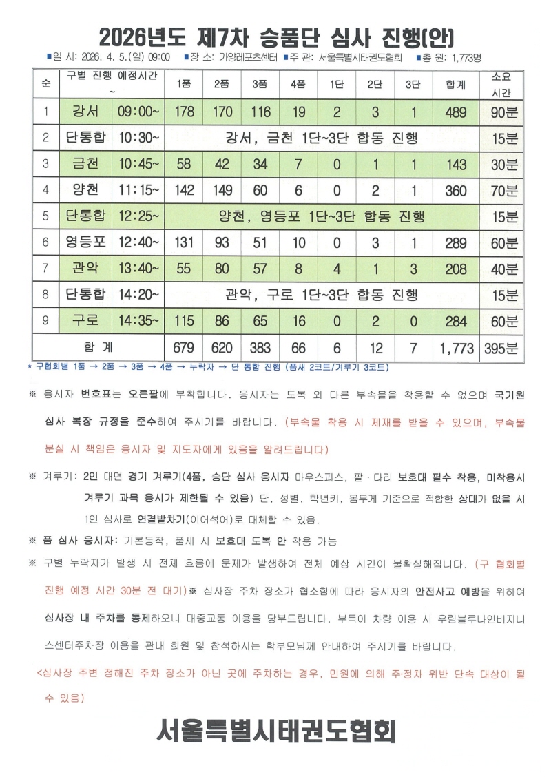 4월5일 제7차 승품단 심사 진행(안) 가양레포츠센터