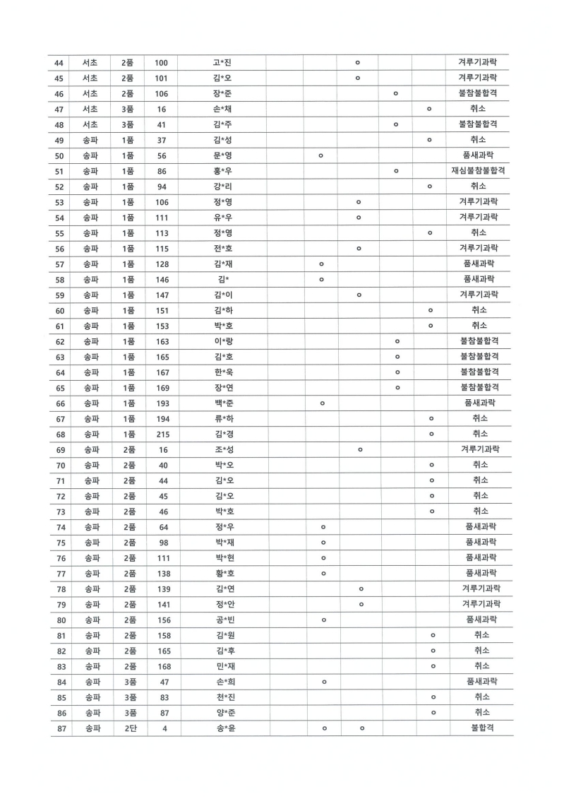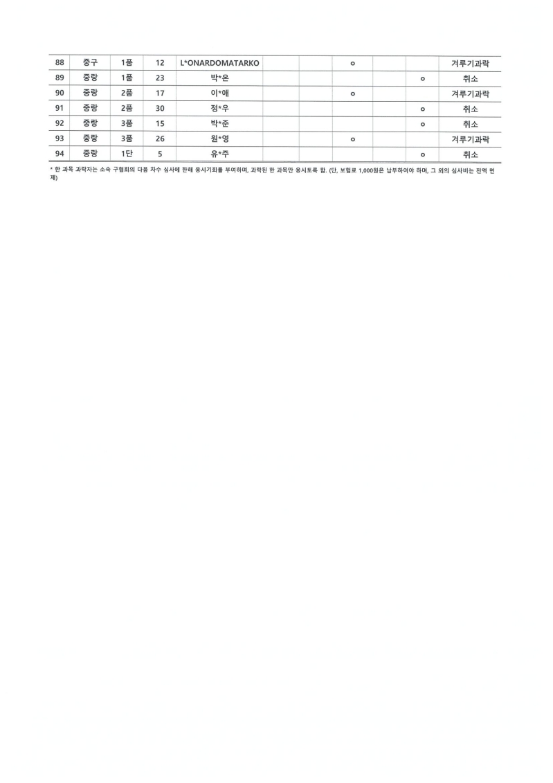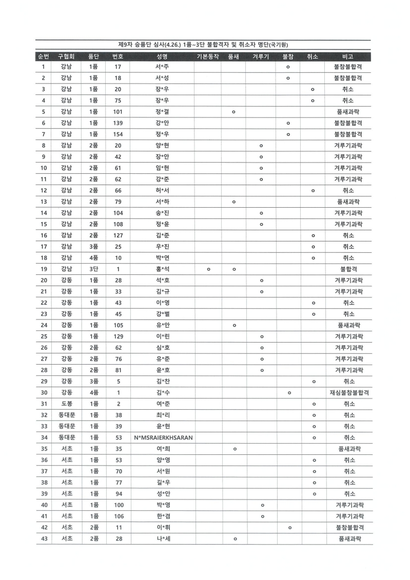 제9차 승품단 심사(4.26) 불합격자 및 취소자 명단(국기원)
